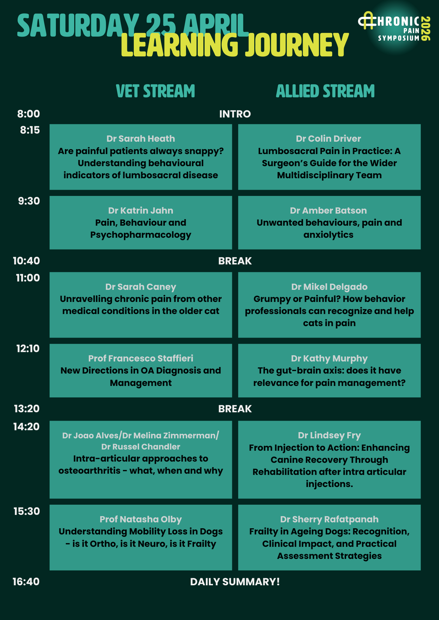 Aimed at allied and veterinary professionals, the Chronic Pain Symposium 26 has something for everyone!
